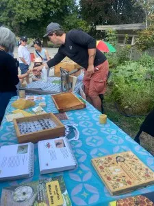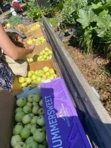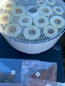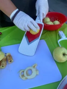 Volunteers demonstrated how to transform local backyard apples into delicious snacks. They demonstrated how to slice it and place them in a dehydrator and learning not just about dehydrating apples but just about any other vegetable on the planet can be dehydrated, anything from potatoes, mushroom, corn and kale too!
