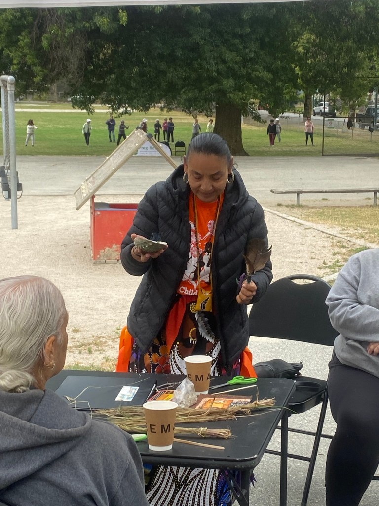 One of our memorable workshops was led by Brenda, an indigenous knowledge keeper, who taught us about harvesting sweet grass and its traditional medicinal uses. We just couldn’t get enough of the sweet vanilla smell. We began the workshop by smudging which regulated us, calmed our spirit down and we listened to her stories and then the braiding began. Always treat sweetgrass like you would your grandmothers hair. Mother Earth is so good to us and has always been there for us and still is. Always has, always will be.