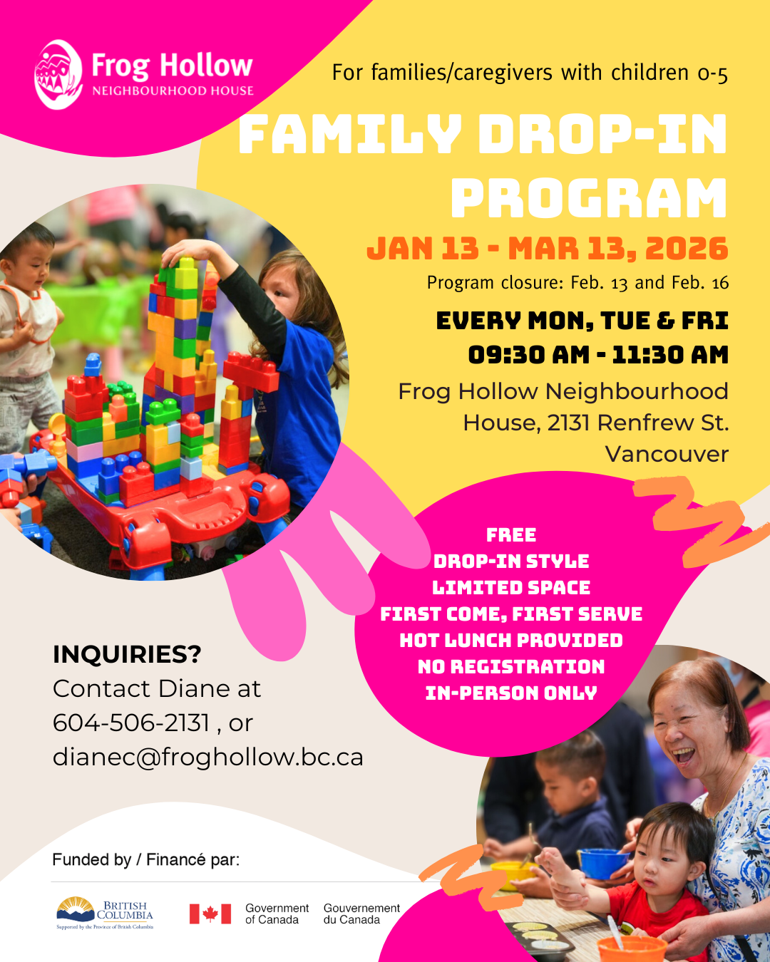 Please reach out to Diane at 604-506-2131 or dianec@froghollow.bc.ca for more questions!