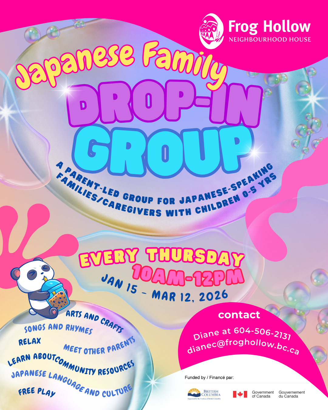 This is a parent-led drop-in group where Japanese families and caregivers with children 0-5 years old gather to celebrate Japanese culture through arts & crafts, songs and rhymes, and free play.