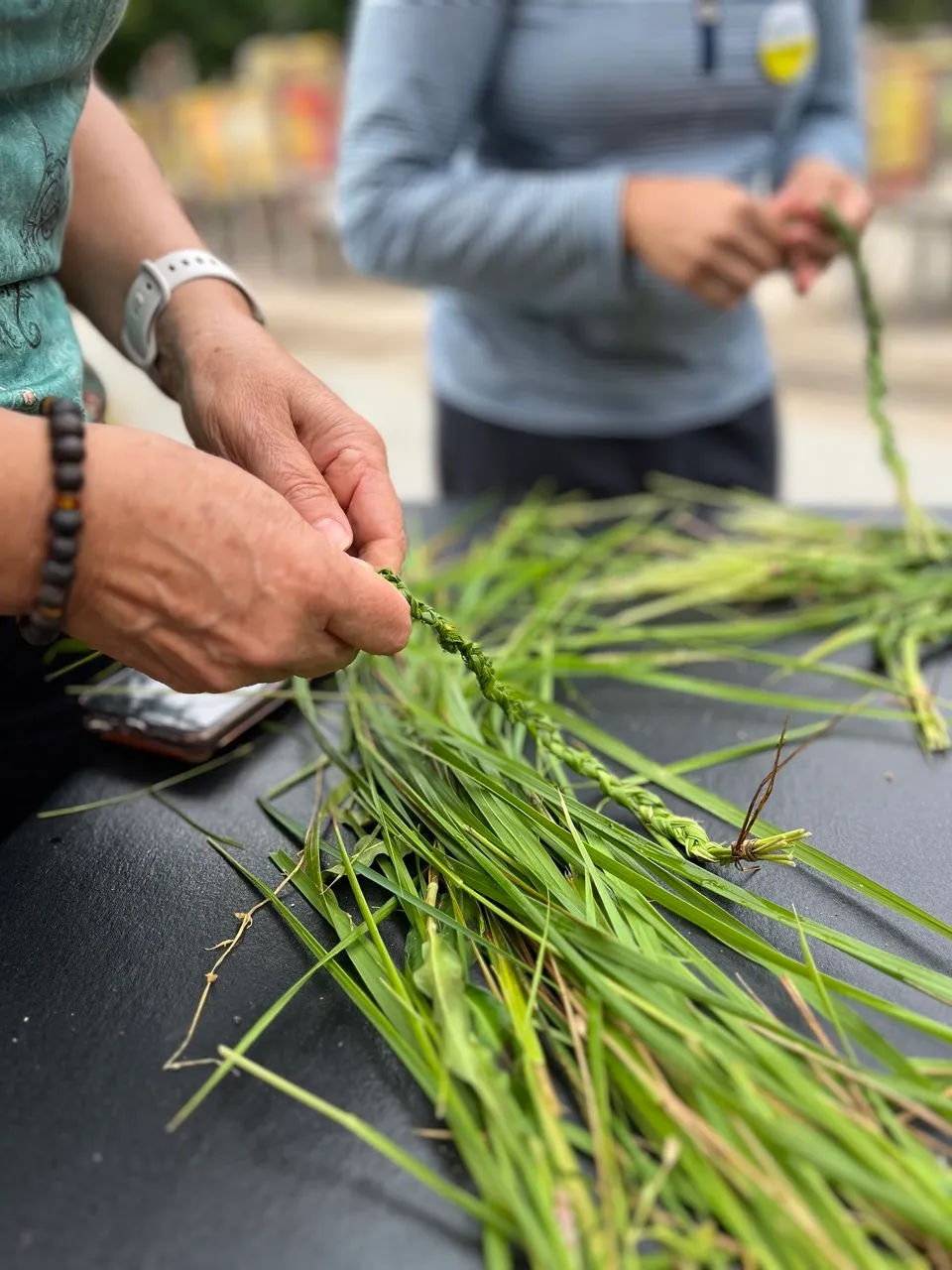 All summer long we're at the garden and in addition to sweet grass braiding workshops led by indigenous knowledge keepers, we provide other medicine making workshops such as the el compane that's growing in the garden and offer kale smoothie and kale salad for people to learn to eat it , drink it and or preserve it. Our sweetgrass is precious to us and we make medicine bags for the community combined with cedar, sage and tobacco which we also grow. Our garden builds capacity with our families in the community and leadership skills, connections friendships and awareness of mother earth and our connection to the land.