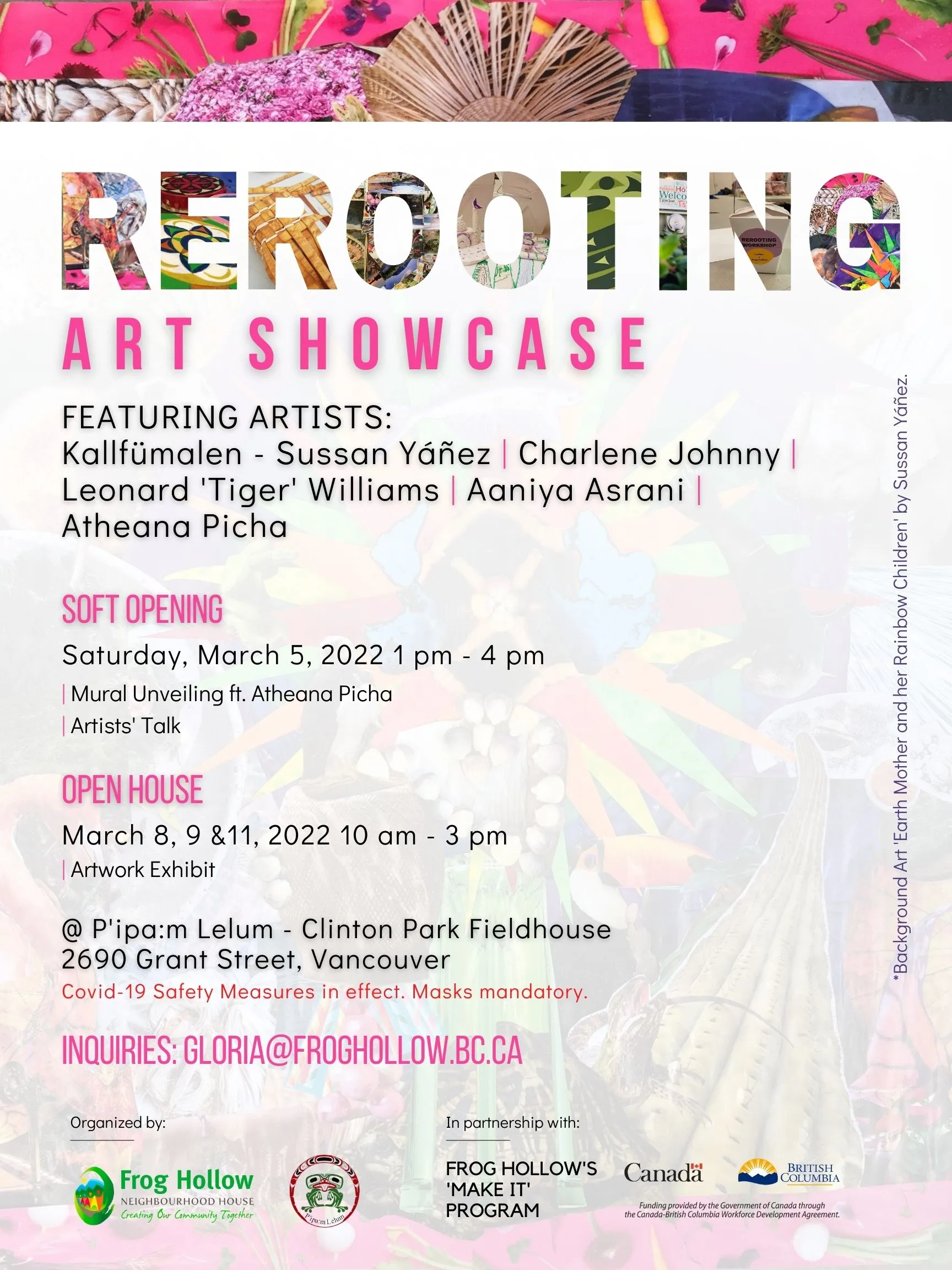 Through the process of art-making, led by Indigenous artists and their wisdom, we hope to guide the community to paint a picture in which we are all rooted to our ancestors, REROOTING on this unceded land as respectful guests.