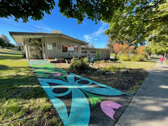 The beautiful mural on the pathway next to the garden was created by Ts’kanchtn (Calvin Charlie-Dawson) , a young indigenous artist from North Vancouver, BC. A group of youth artists from Frog Hollow’s Make It Program painted the mural in the fall of 2022.